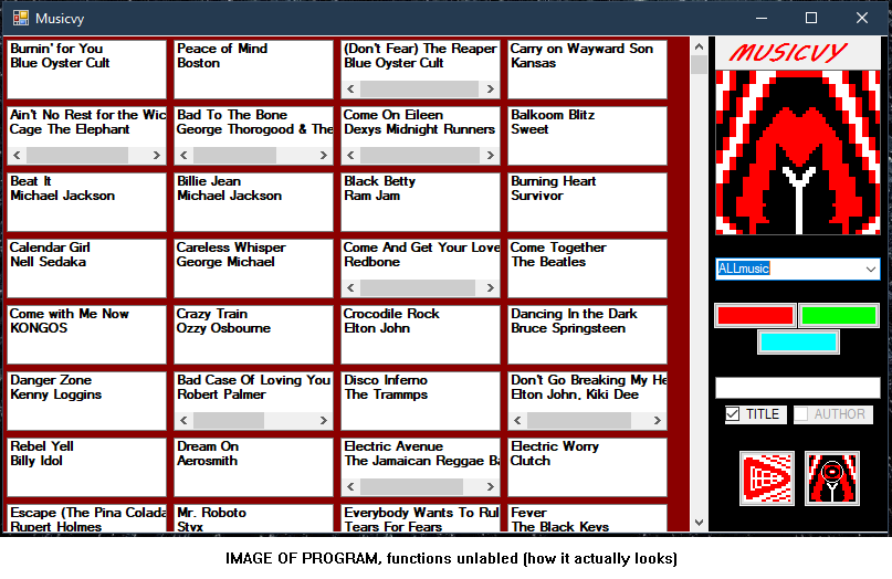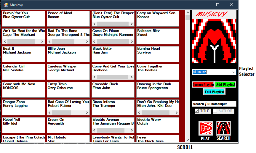 Musicvy is a free to use Windows Form application that displays song titles and authors from playlists (which are .txt files). Also has limited music playing (via Youtube) and searching functionality.